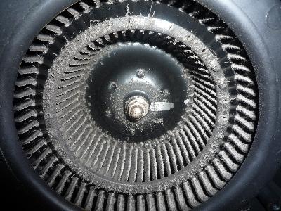 取り外さないで見えるところだけ掃除すると、左側のドラム部分に落ちたホコリが溜まりシロッコファンの羽一枚一枚をエタノールで拭き取ったとしても、換気扇を回し始めるととホコリが飛び散るように落ちてきますので、しばらく回し続ける必要が有ります。しかしそれだけでは不十分なので裏ワザを使わなければなりません。